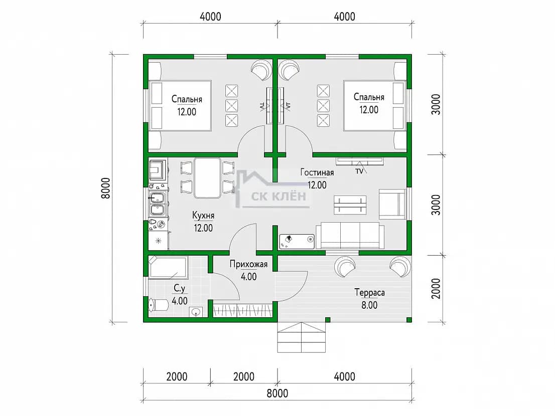| Силовой каркас | Каркас выполняется из бруса 100х40мм, 150х40мм или 200х40мм - камерной сушки, шагом стоек через 590мм. Ригеля из бруса 100х40мм - камерной сушки. С наружней стороны монтируется контр рейка из не строганной обрезной доски 50х20мм камерной сушки. Ветровлагозащита, каркас обшивается с наружной стороны имитаций бруса камерной сушки. С внутренней стороны монтируется парогидроизоляция. Каркас обшивается с внутренней стороны вагонкой камерной сушки. Утепление - 100мм, 150мм или 200мм. |
