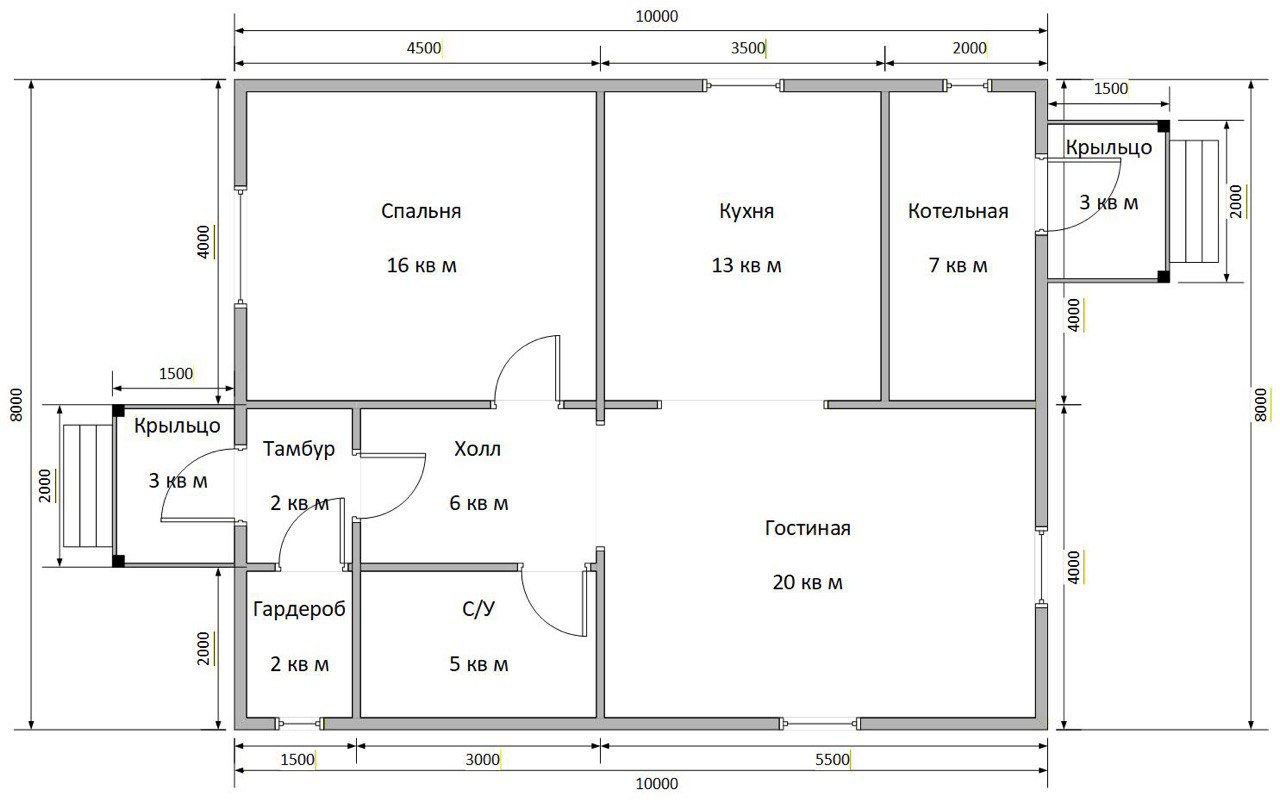 | Высота | 2,50м –1эт., 2,30м – 2эт (допуски по высоте: +/-50 мм). |